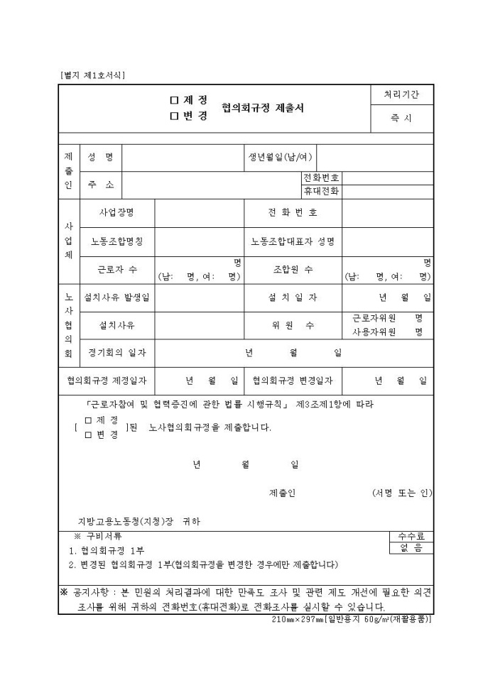 노사협의회규정제정(변경) 제출서