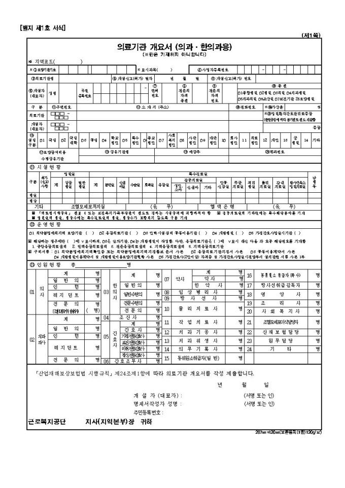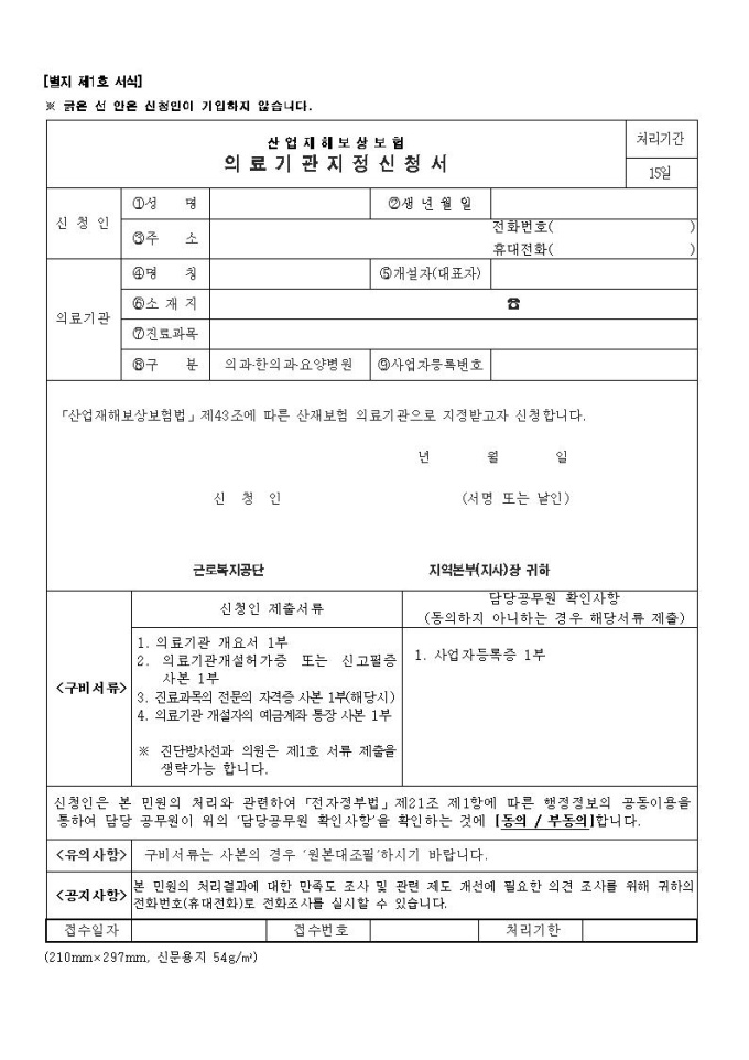 산업재해보상보험 의료기관지정신청서