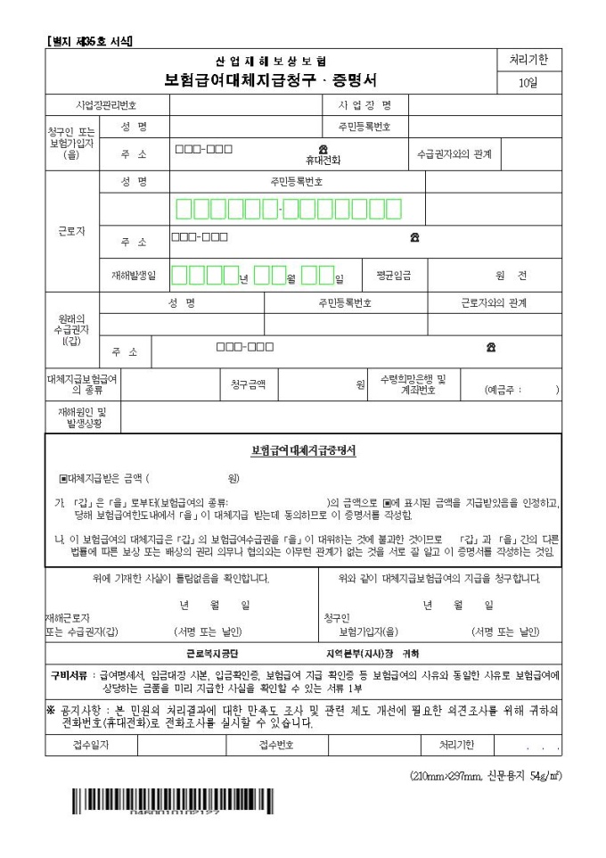 산업재해보상보험 보험급여대체지급청구·증명서