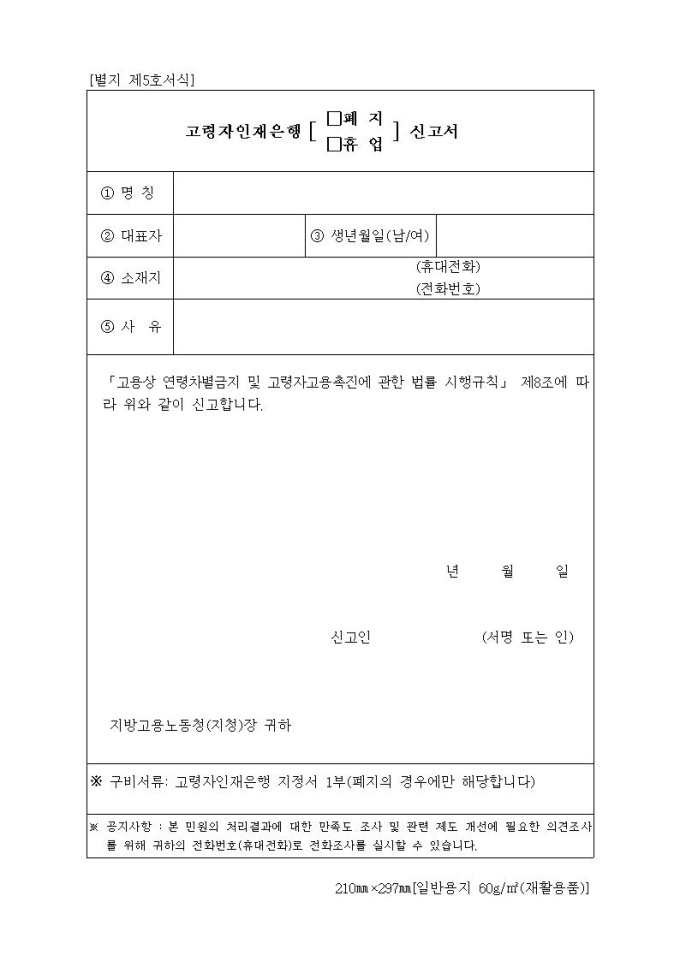 고령자인재은행 □폐지 □휴업 신고서