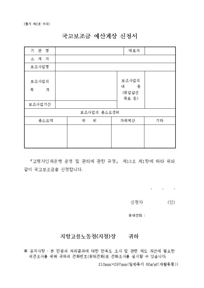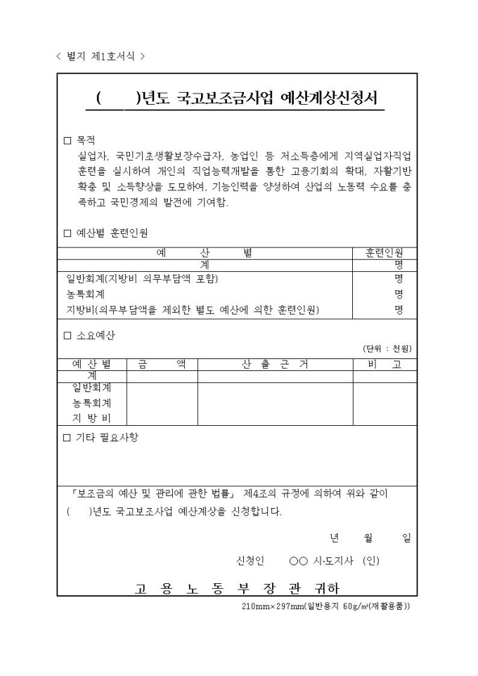 국고보조금사업 예산계상신청서(지역실업자훈련_고령자인재은행)