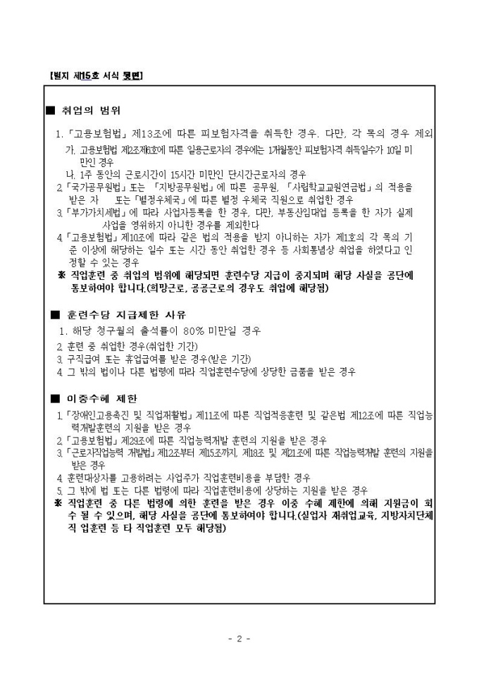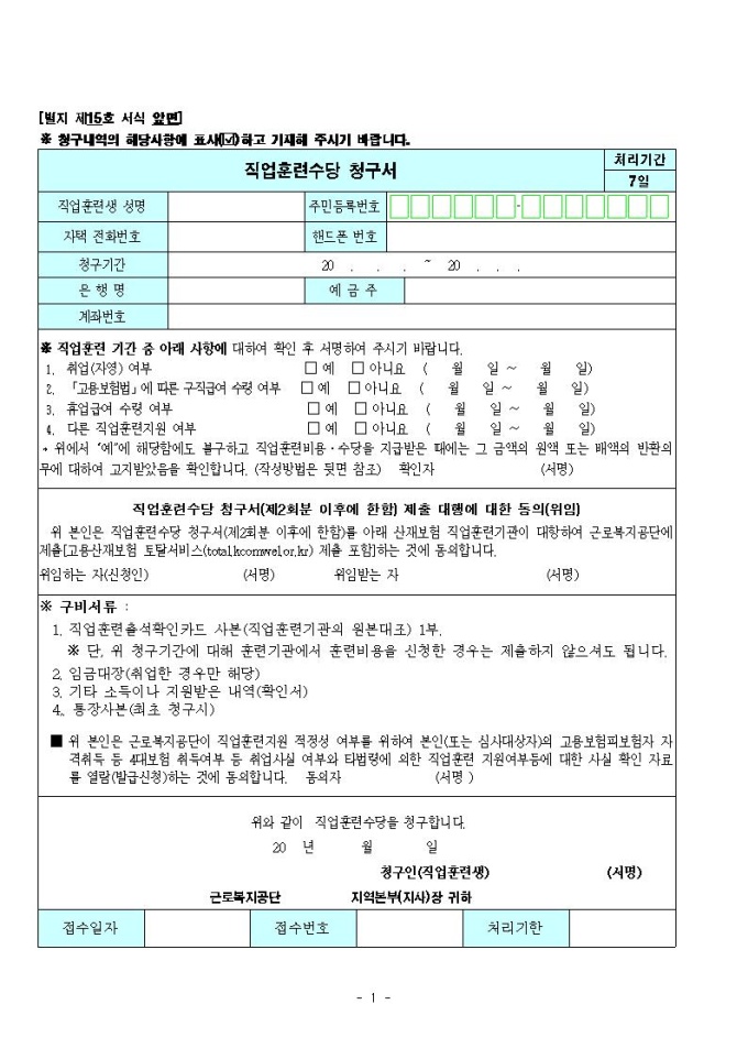 산업재해보상보험 직업훈련수당 청구서