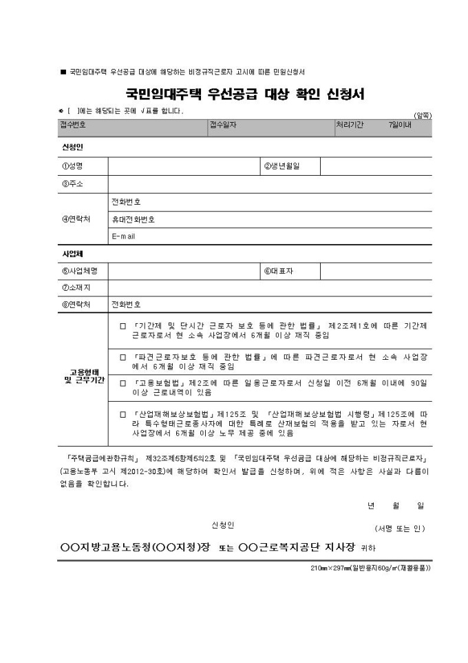 국민임대주택 우선공급 대상 확인 신청서