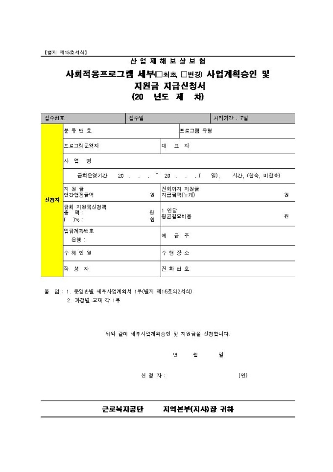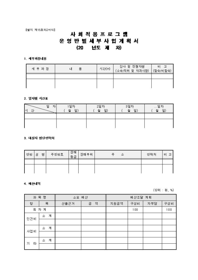 사회적응프로그램 세부사업계획승인및지원금 지급신청서