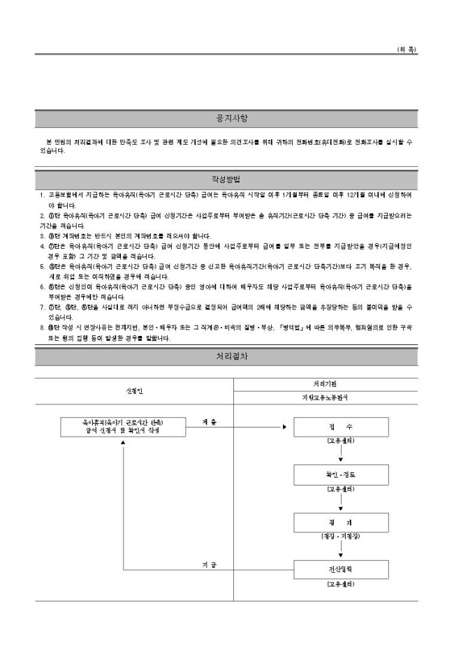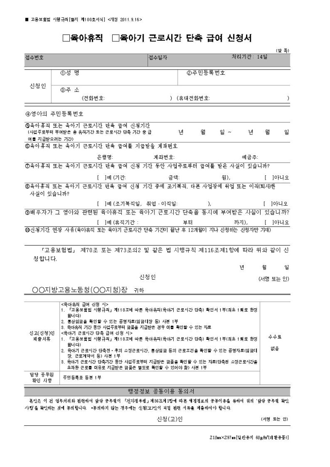 육아휴직 육아기 근로시간 단축 급여 신청서