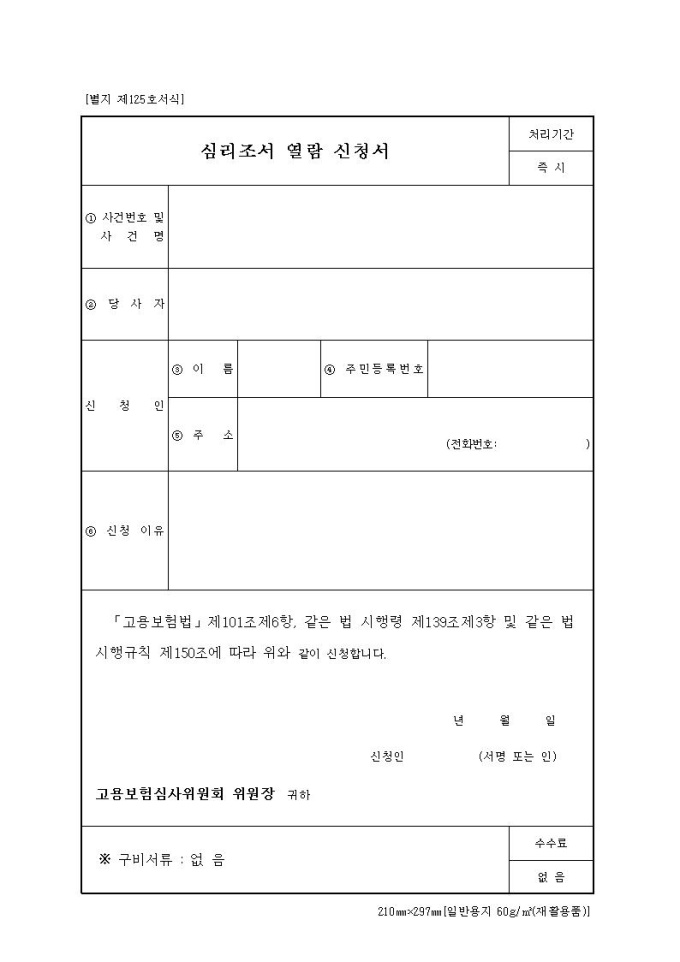 심리조서열람신청서(고용보험)