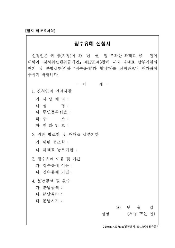징수유예 신청서
