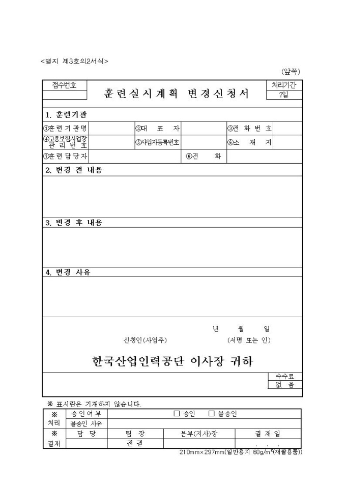 훈련실시계획 변경신청서