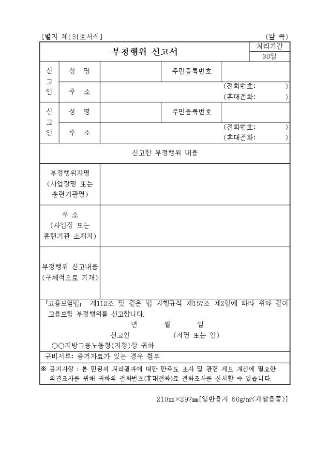 고용보험 부정행위 신고서