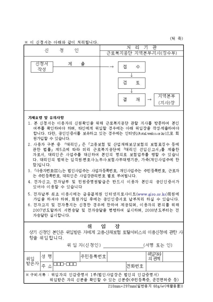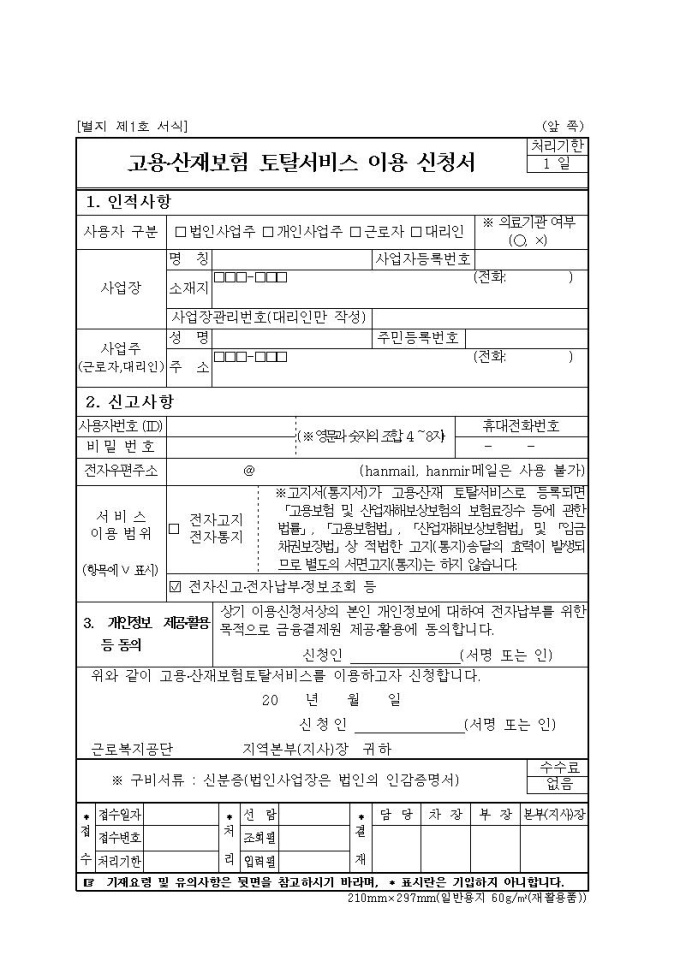 고용·산재보험 토탈서비스 이용 신청서