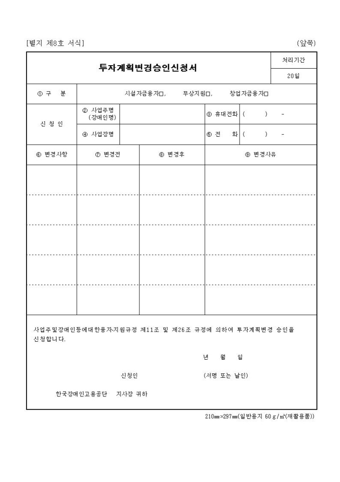 투자계획변경승인신청서