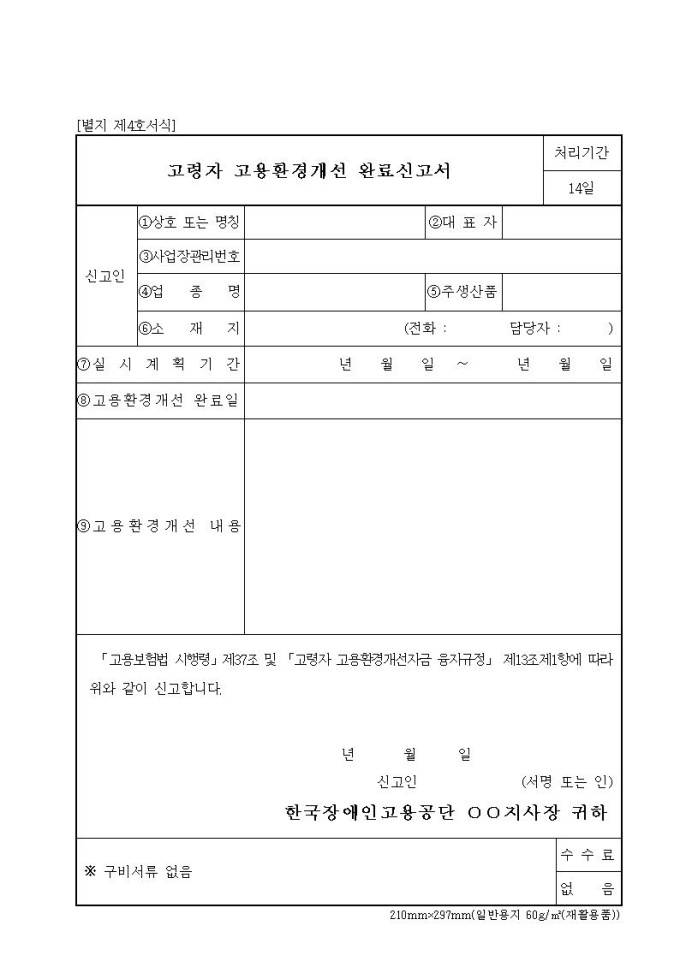 고령자 고용환경개선 완료신고서
