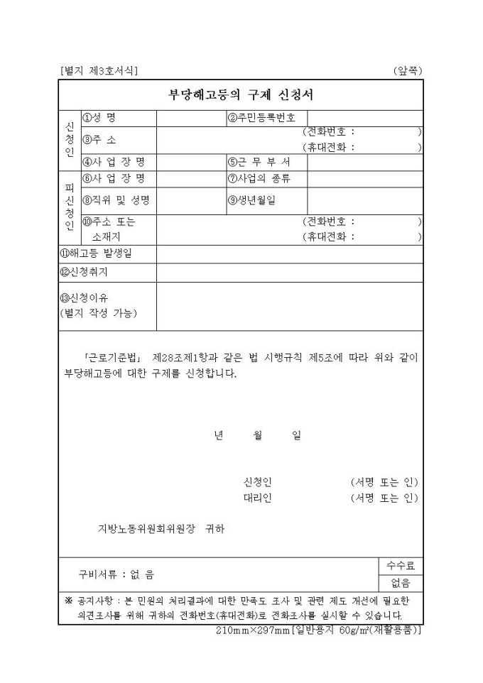 부당해고등의 구제 신청서