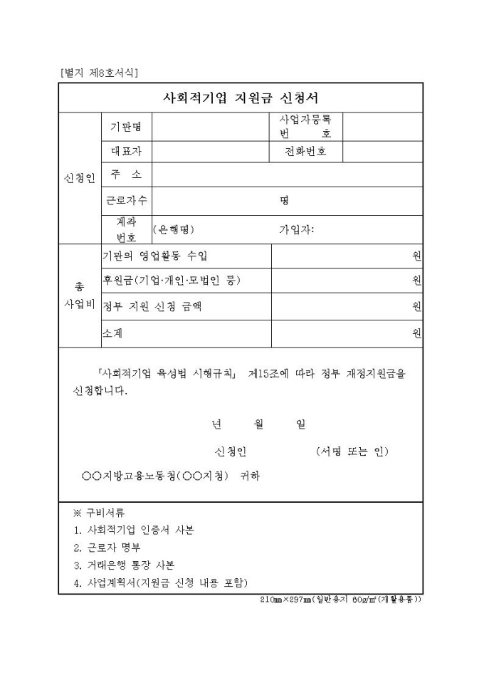 사회적기업 지원금 신청서