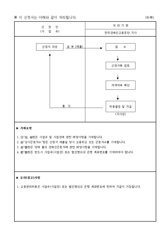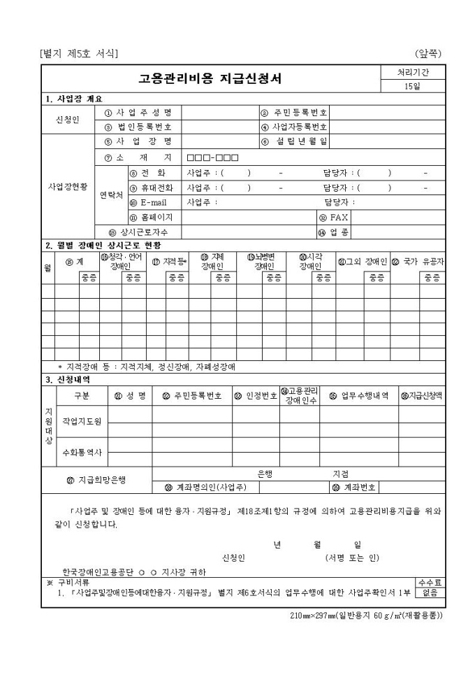 고용관리비용 지급신청서