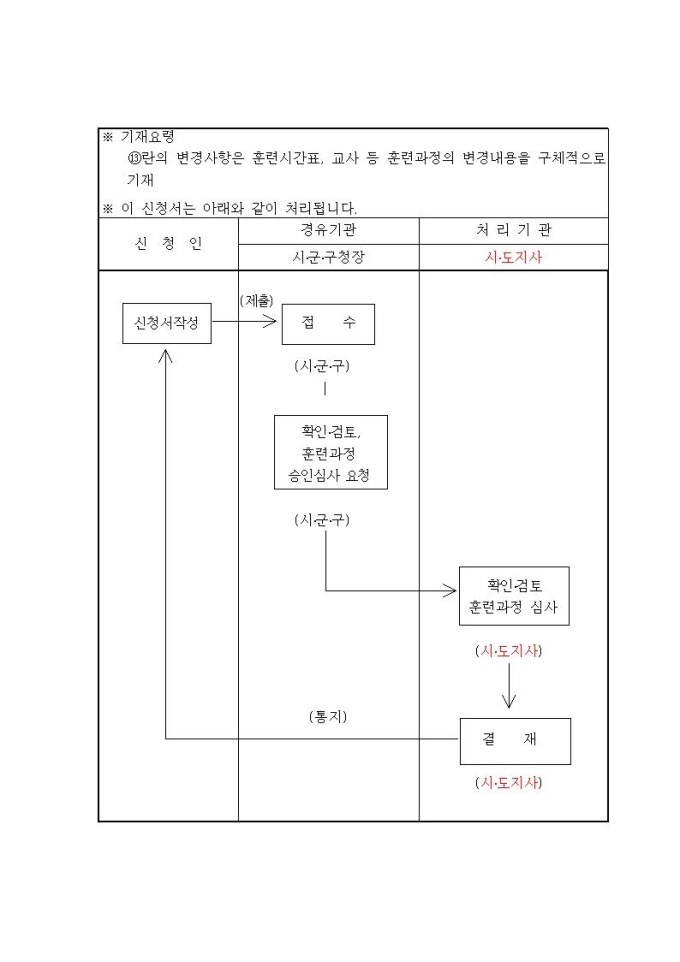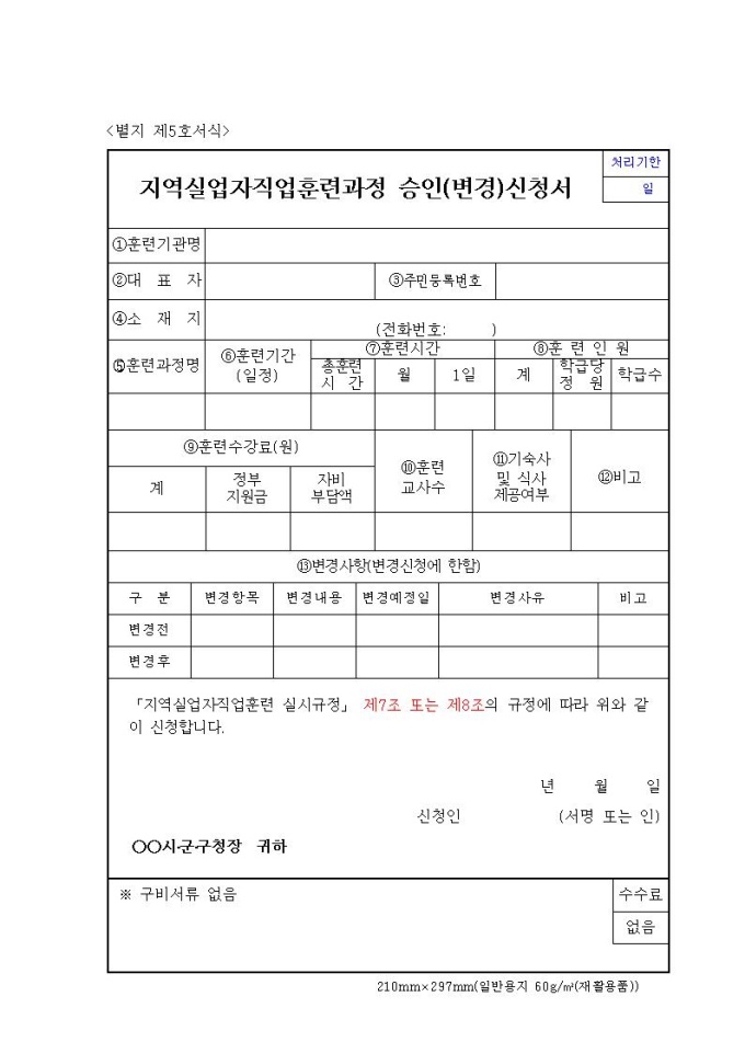 지역실업자직업훈련과정 승인(변경)신청서
