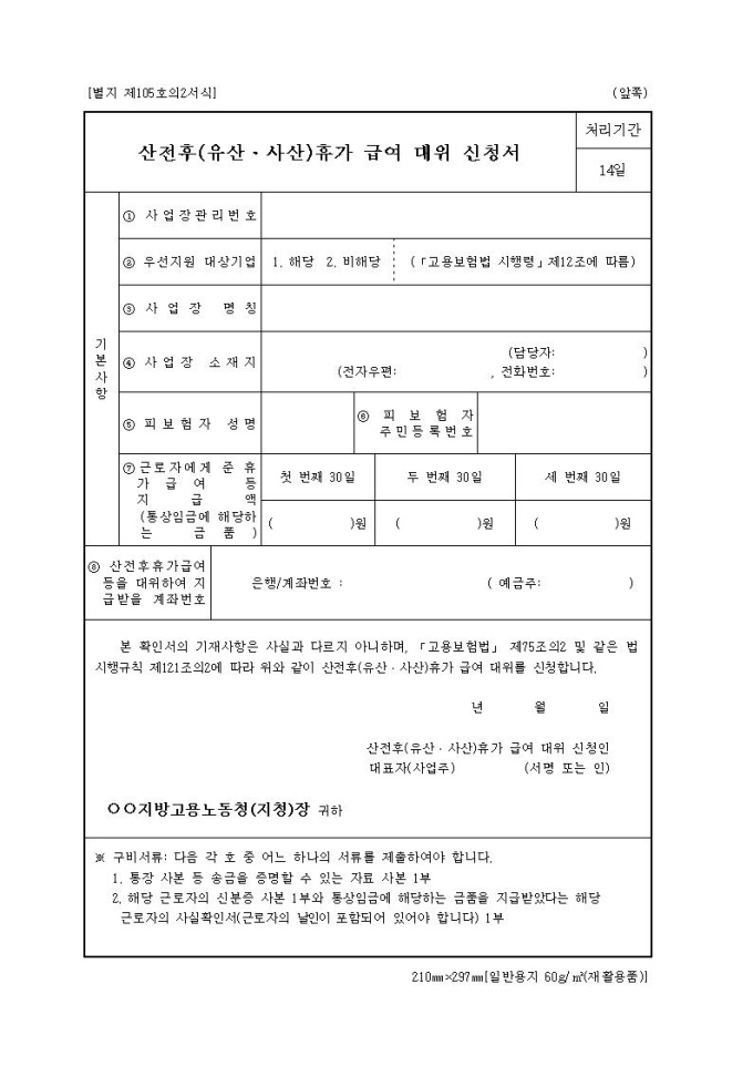 산전후(유산·사산)휴가 급여 대위 신청서