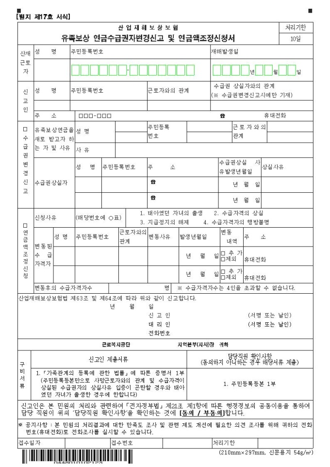 산업재해보상보험 유족보상 연금수급권자변경신고 및 연금액조정신청서