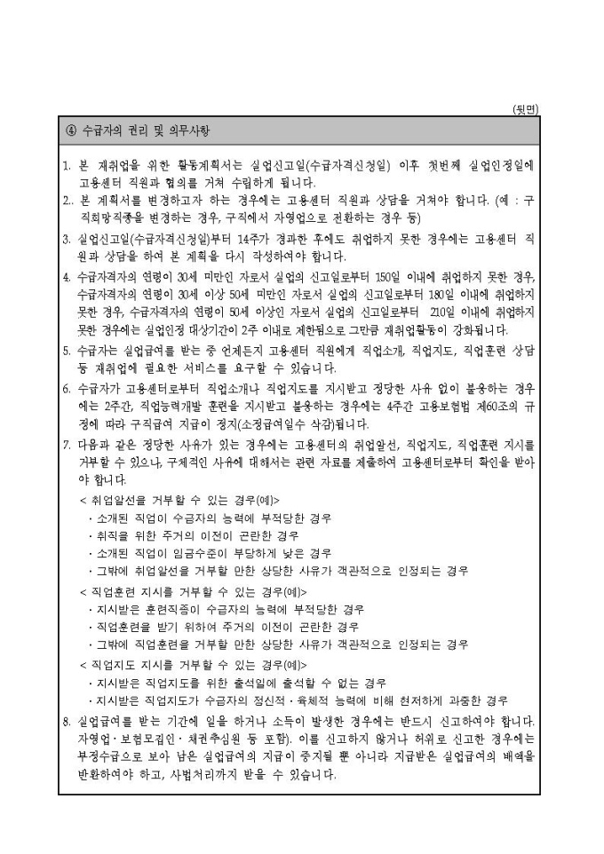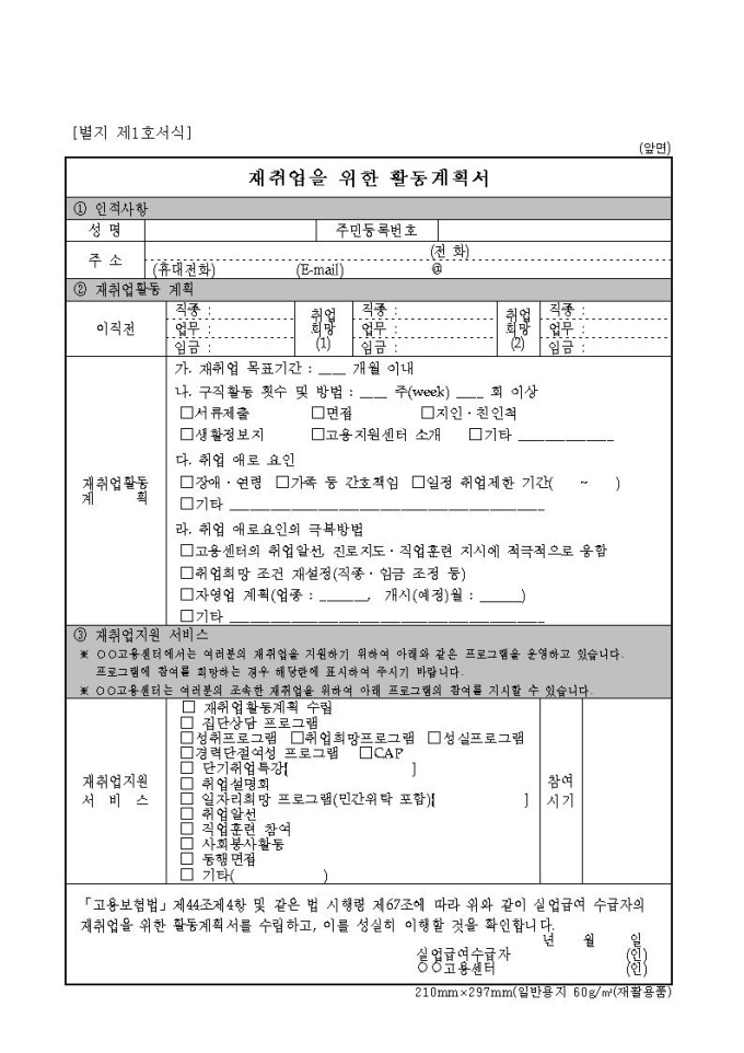 재취업을 위한 활동계획서