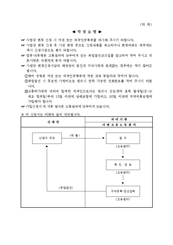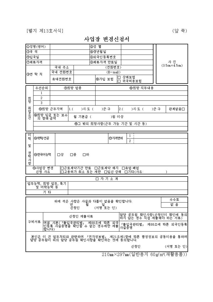 외국인근로자 사업장변경신청서