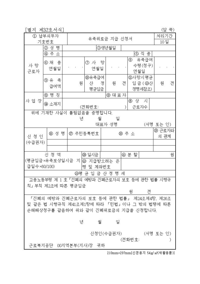 유족위로금 지급신청서