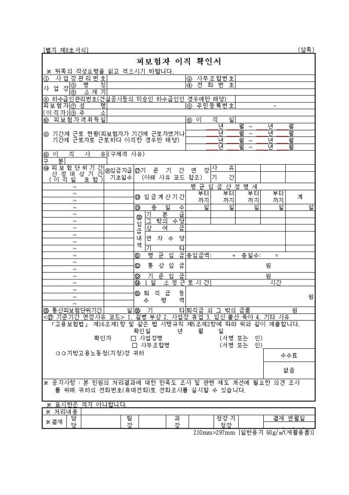 피보험자 이직확인서