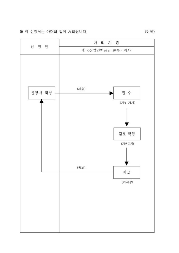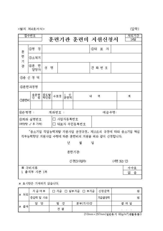 훈련기관 훈련비 지원신청서