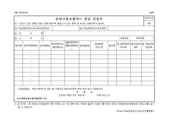 건설고용보험카드 발급 신청서