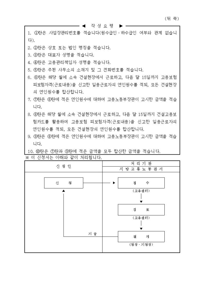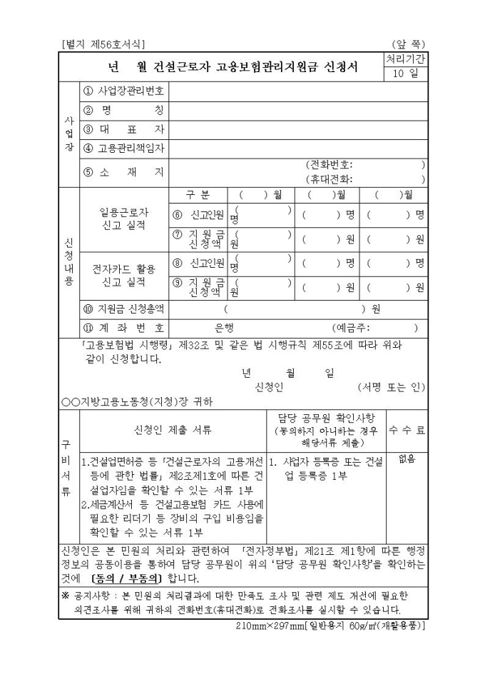 건설근로자 고용보험관리지원금 신청서