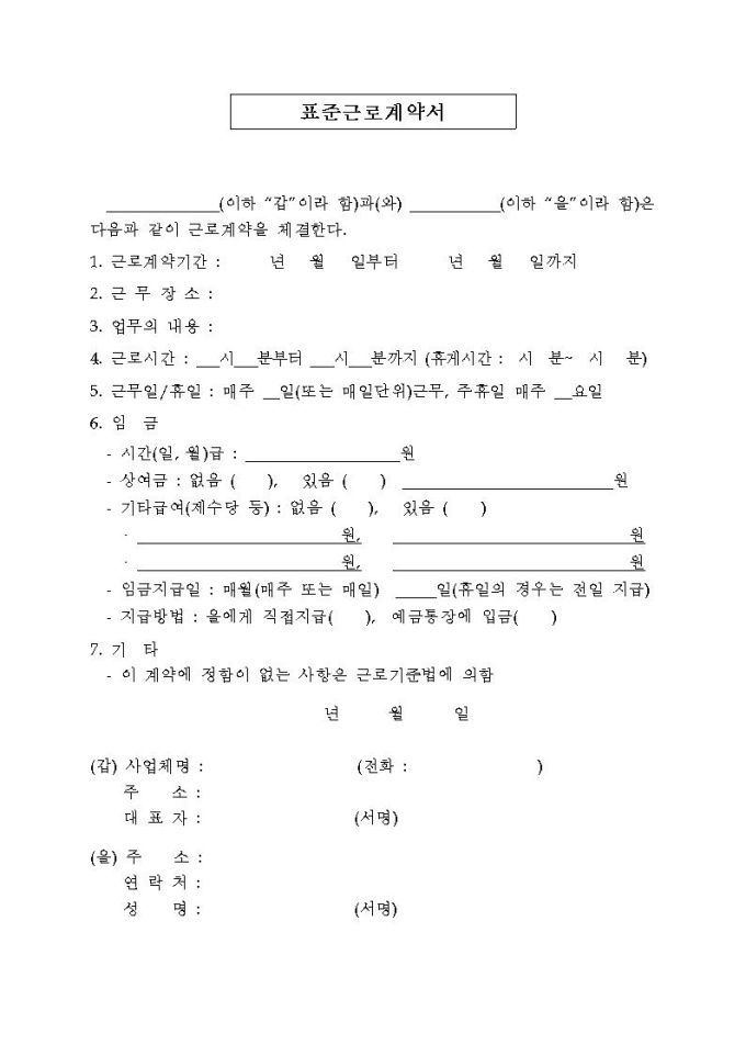 표준근로계약서(모음)