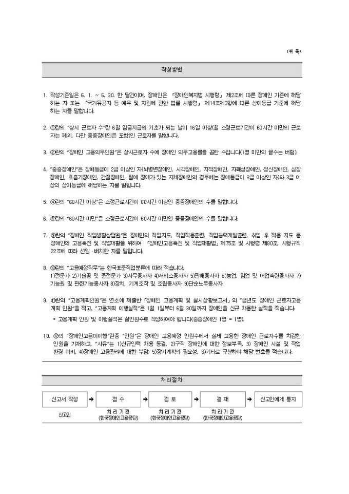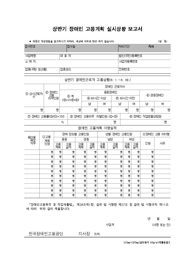 상반기 장애인 고용계획 실시상황 보고서 서식