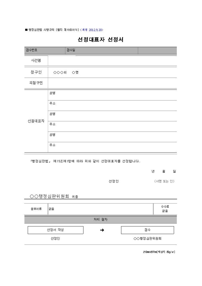 [서식 19] 선정대표자 선정서