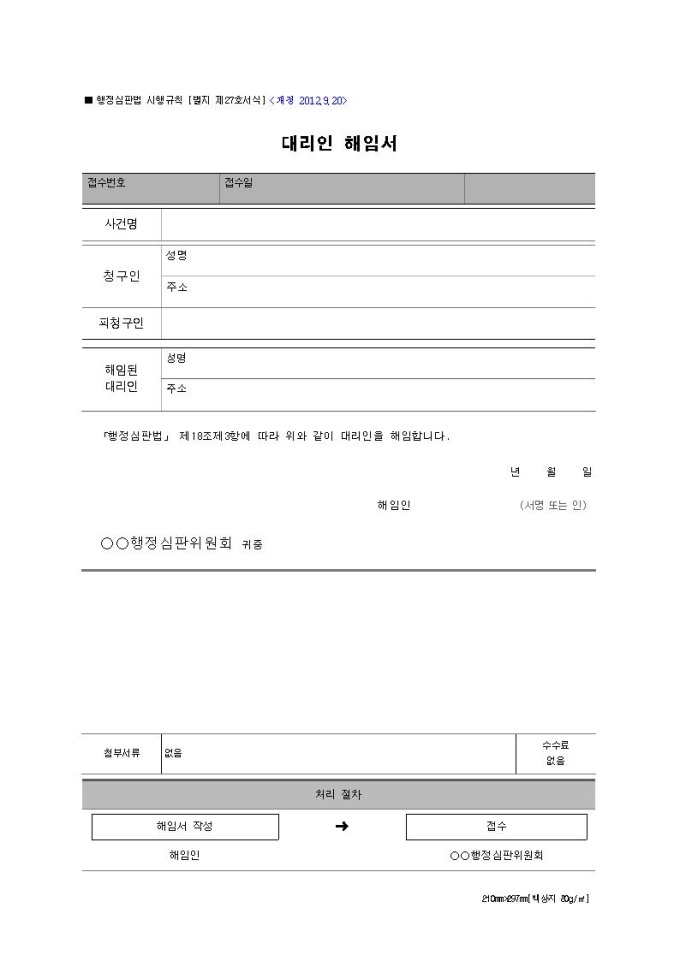 [서식 27] 대리인 해임서