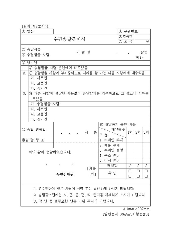 [서식 3] 우편송달통지서