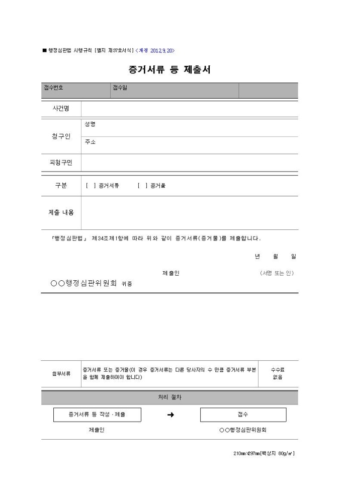 [서식 37] 증거서류 등 제출서