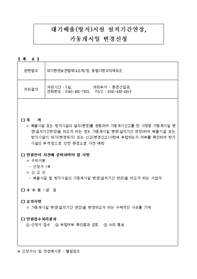 대기배출(방지)시설설치기간연장, 가동개시일변경신청