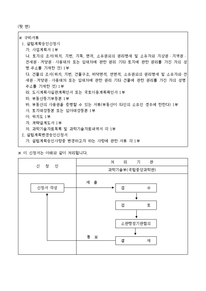 과학관육성법 제7조제1항 및 동법시행령 제8조의 규정에 의하여 위와 같이 과학관설립계획(설립계획변경)승인을 신청합니다.