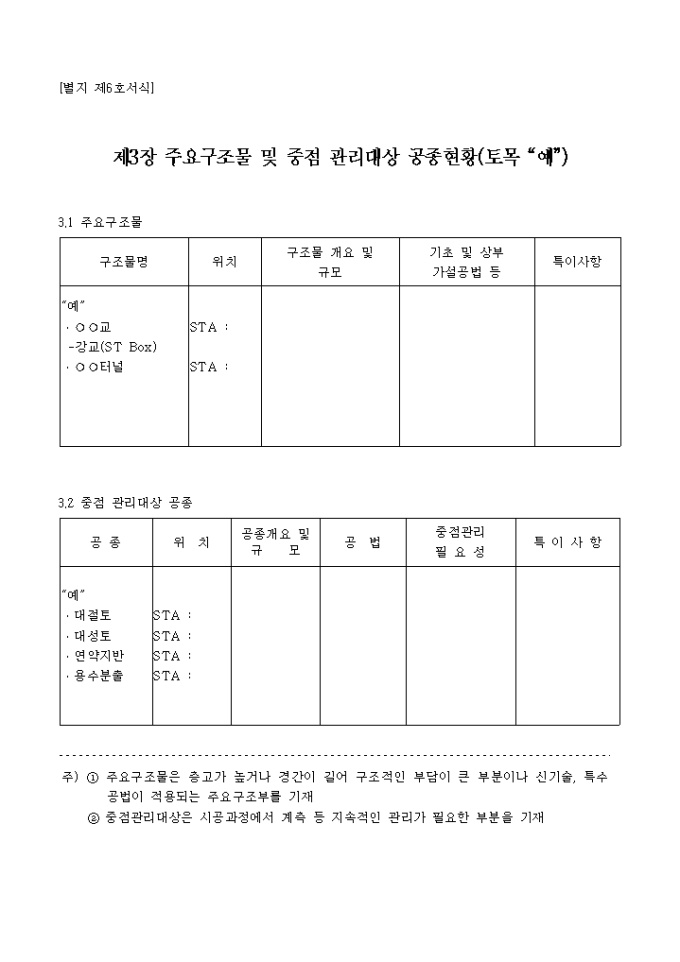 주요구조물 및 관리대상공종현황