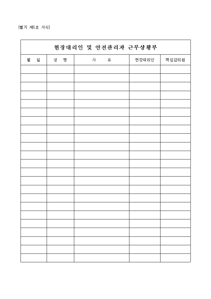 현장대리인및안전관리자근무상황부 입니다.