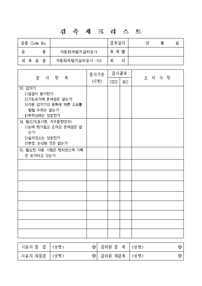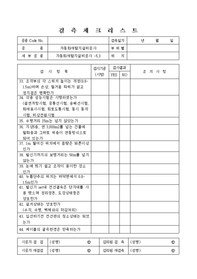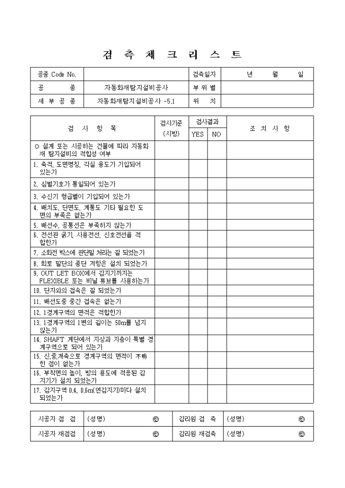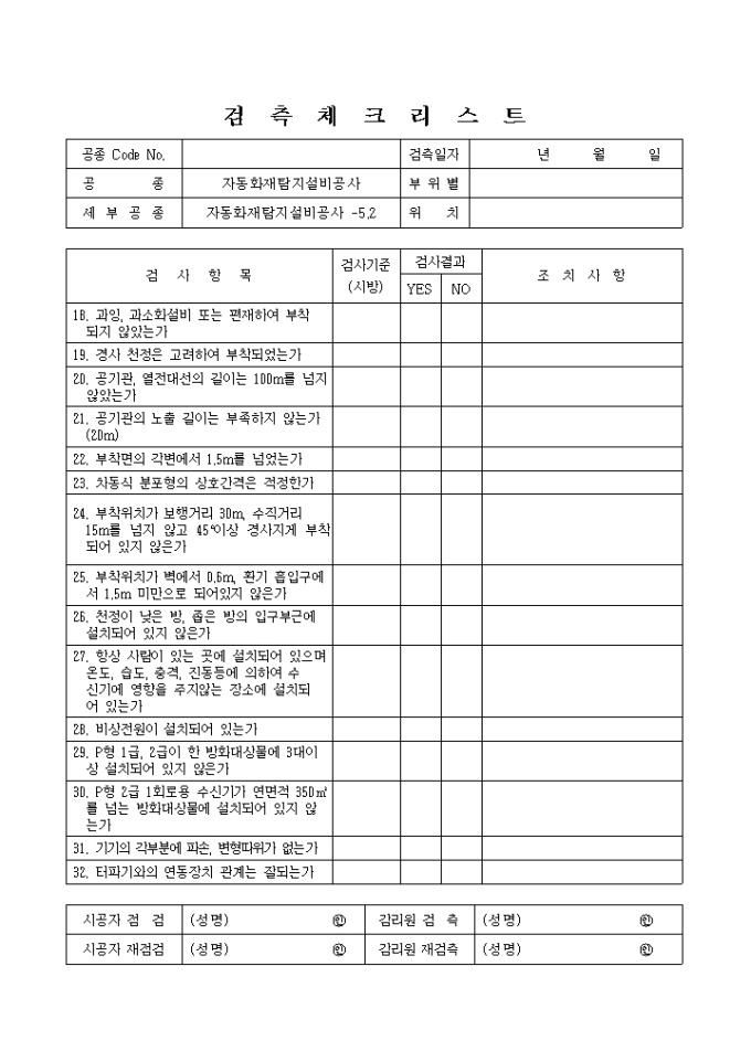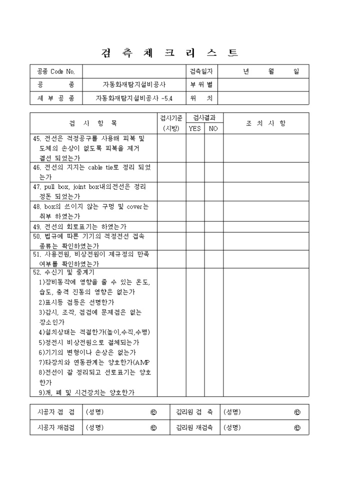 방재전기설비및전기방식(防飾)설비공사,자동화재탐지설비공사 체크리스트 입니다.