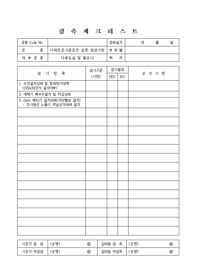9,000원/월건축기계설비공사준공점검,다용도실및발코니 체크리스트 입니다.