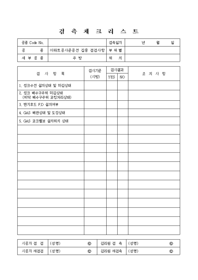 9,000원/월건축기계설비공사준공점검,주방 체크리스트 입니다.