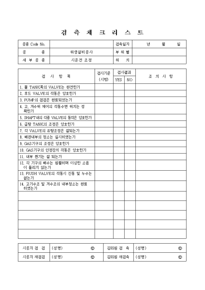 9,000원/월급배수설비위생설비공사,시운전조정① 체크리스트 입니다.