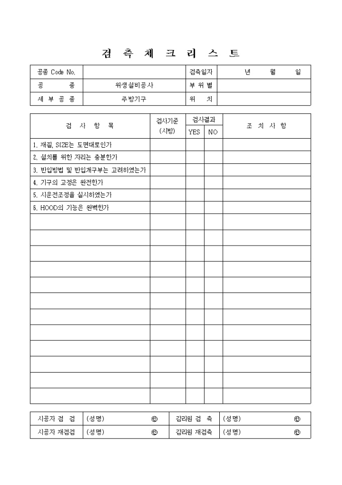 9,000원/월급배수설비위생설비공사,주방기구 체크리스트 입니다.