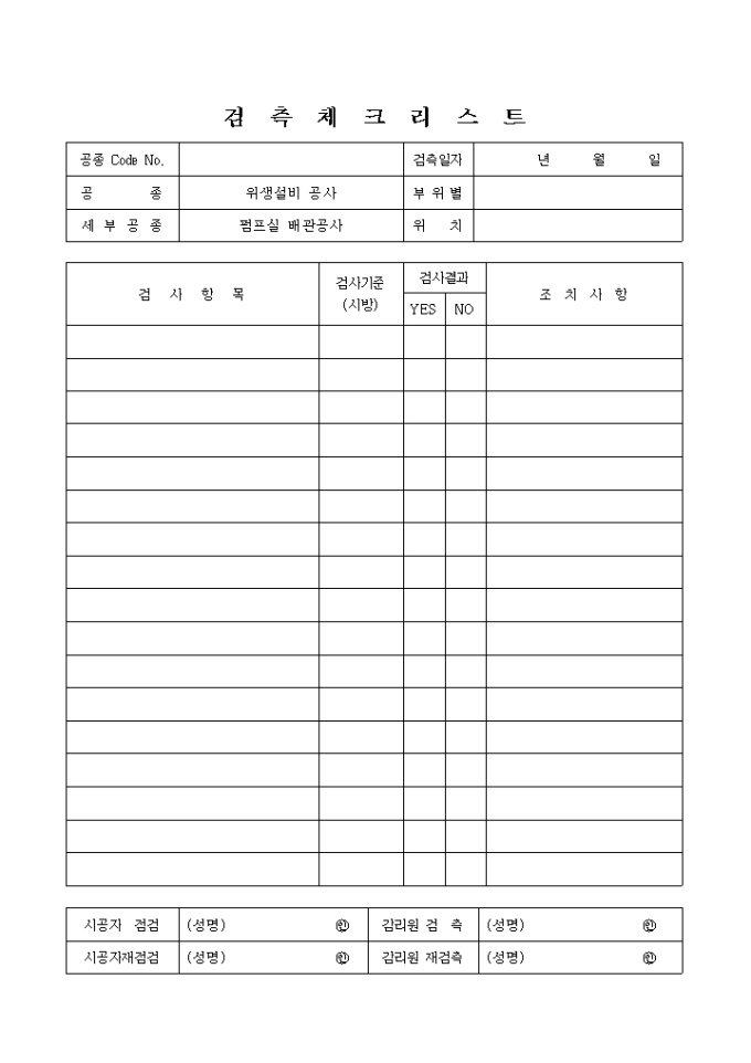 9,000원/월급배수설비위생설비공사,펌프실배관공사 체크리스트 입니다.