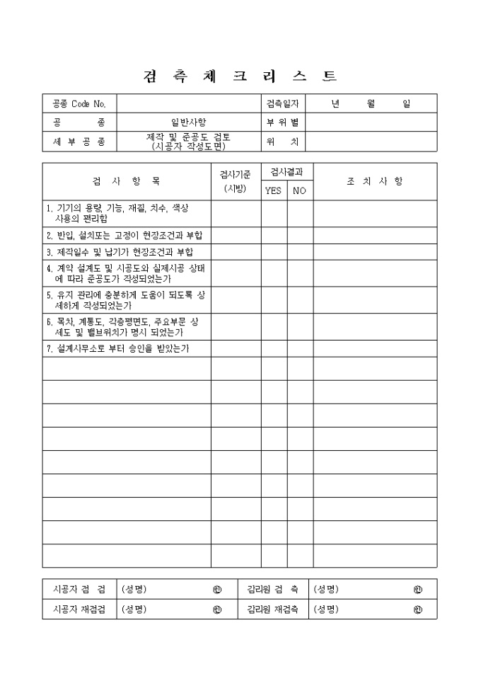 9,000원/월일반공통사항,제작및준공도검토(시공자작성도면) 체크리스트 입니다.