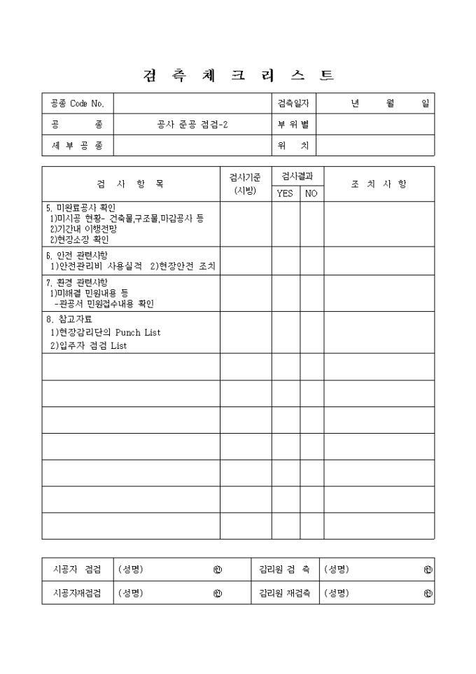 건축공사 준공점검,공사준공점검 체크리스트 입니다.