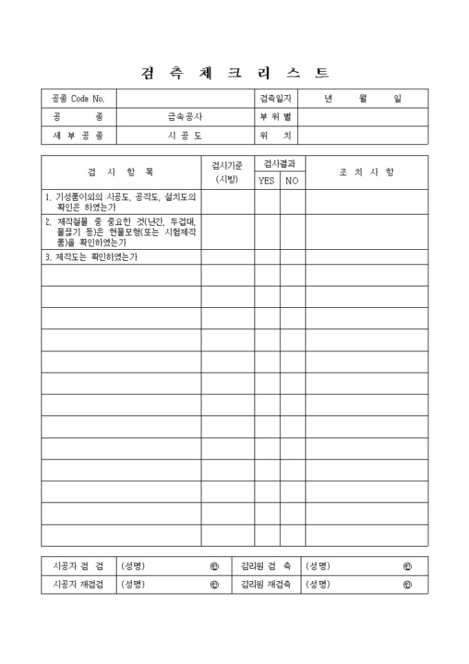 1. 기성품이외의 시공도, 공작도, 설치도의 확인은 하였는가