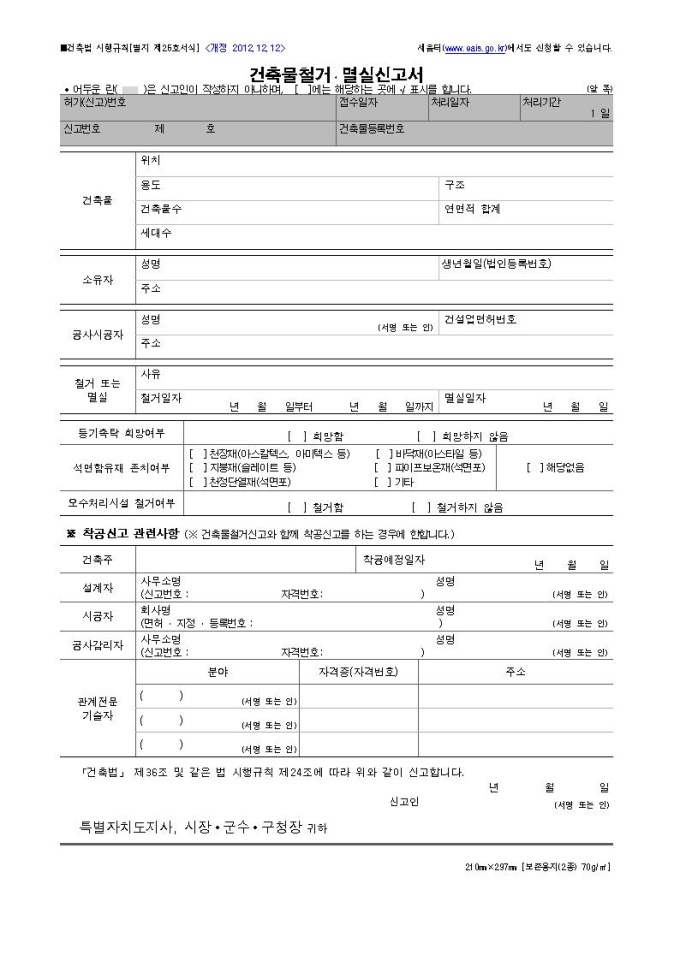 [서식 25] 건축물철거ㆍ멸실신고서