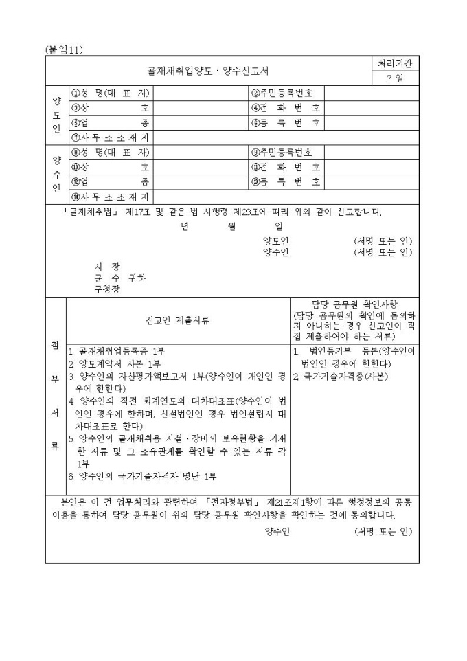 골재채취업양도양수신고서